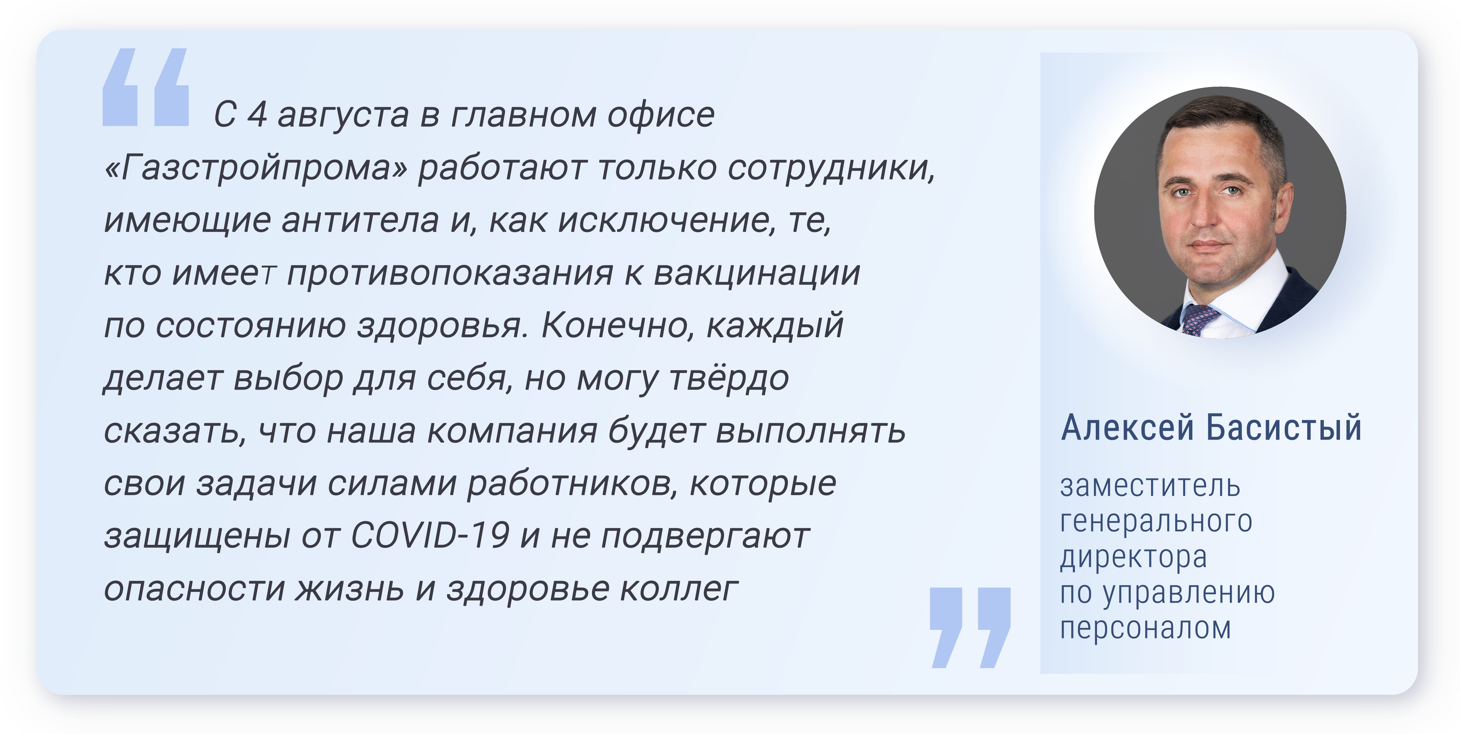 На начало августа на строительстве участка км 0 – км 320 «Ковыкта – Чаянда» МГ «Сила Сибири» антитела имеют 99% работников, на обустройстве сеноман-аптских залежей Харасавэйского ГКМ – 98%. На объектах Бованенковского и Уренгойского месторождений, на компрессорных станциях «Новосиндорская», «Новомикуньская», «Новоурдомская», «Грязовецкая», «Пикалёвская» уровень коллективного иммунитета превышает 90%.