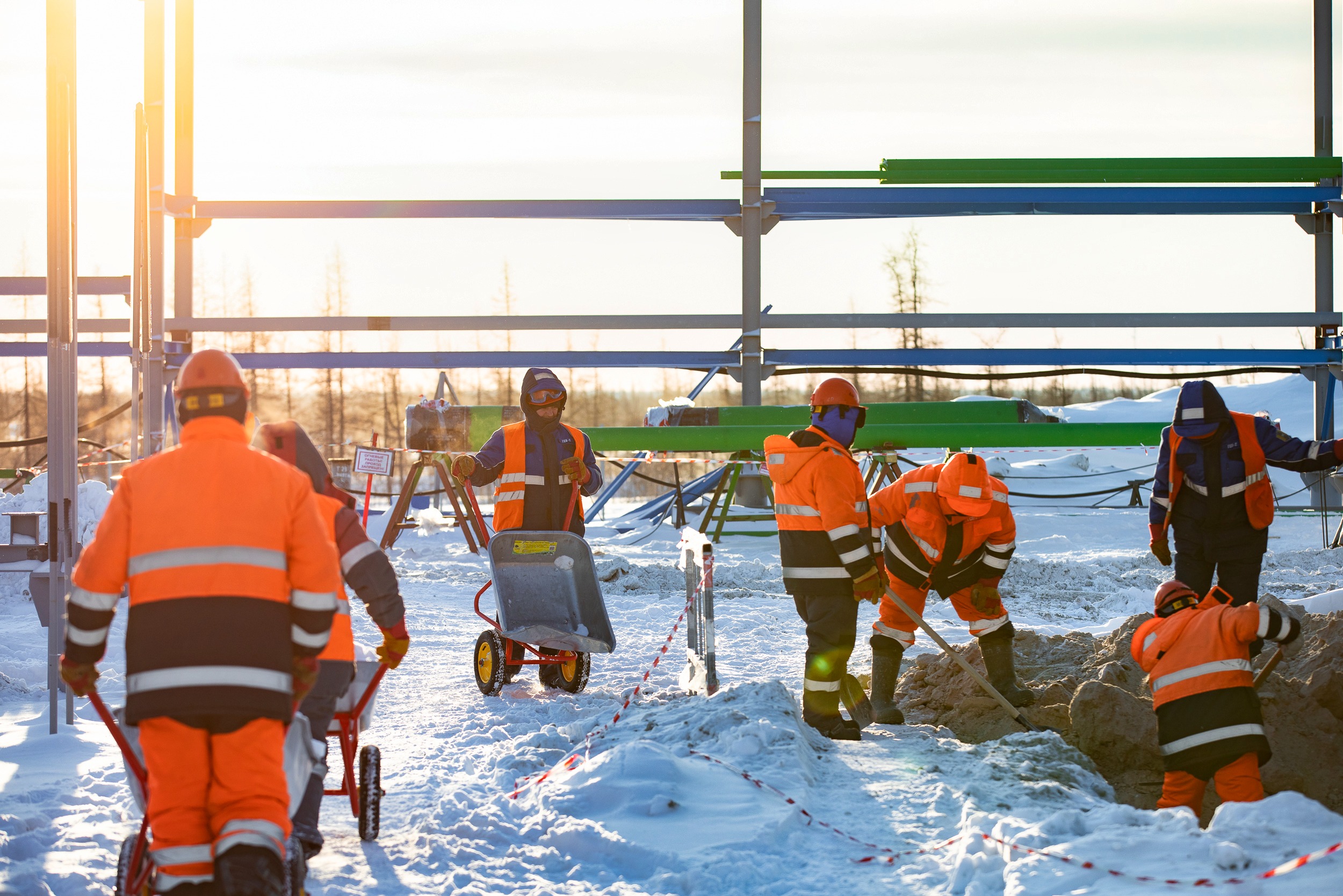 На Уренгойском НГКМ нередки сильные метели, а порой – и настоящие снежные бури. Но нашей съёмочной группе удалось застать хорошую погоду. О том, как продвигается строительство, смотрите наши репортажи.
